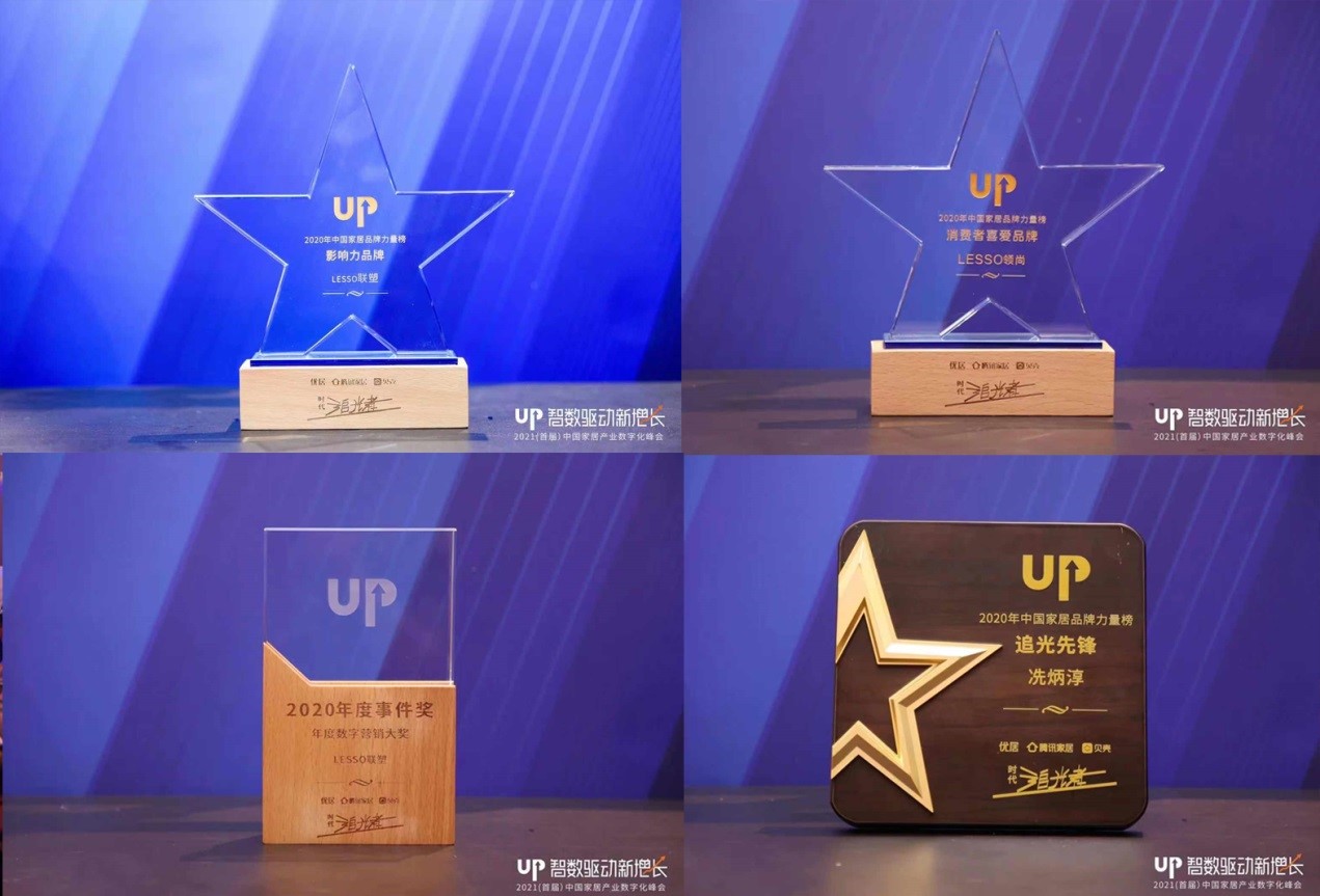 在本次盛典中國家居品牌力量榜評選中,中國聯塑憑借其在市場占有率、品牌影響力以及全球領導力等方面的突出表現斬獲四項大獎,其中LESSO聯塑獲得“影響力品牌”、“數字營銷大獎”,LESSO領尚獲得“消費者喜愛品牌”大獎,同時,集團市場與品牌管理中心總監冼炳淳在2020家居品牌力量評選中榮獲 “追光先鋒”稱號。